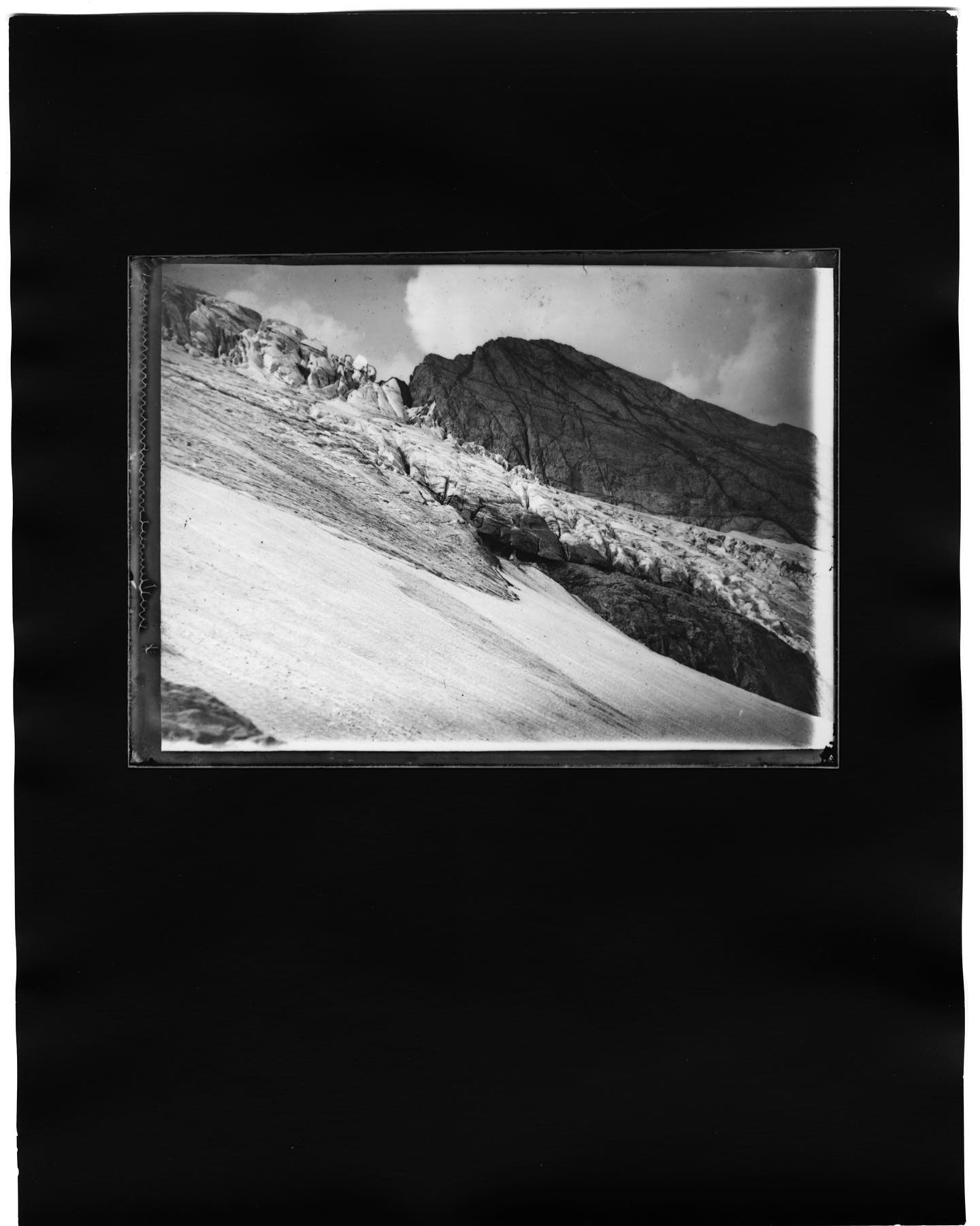 Ci-contre : Glacier d'Ossoue photographié par Eugène Trutat au XIXème siècle. Reproduction argentique réalisée par Grégoire Eloy et Frédérique Gaillard.